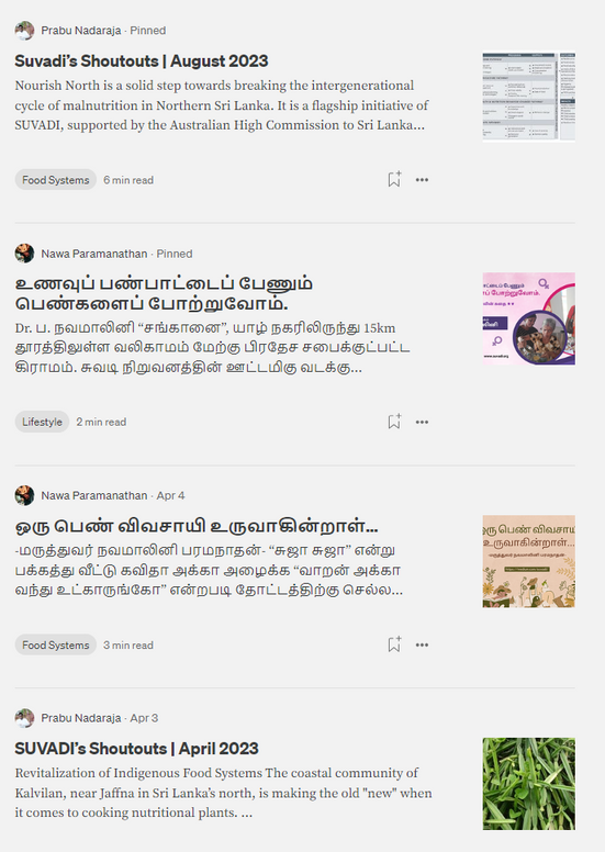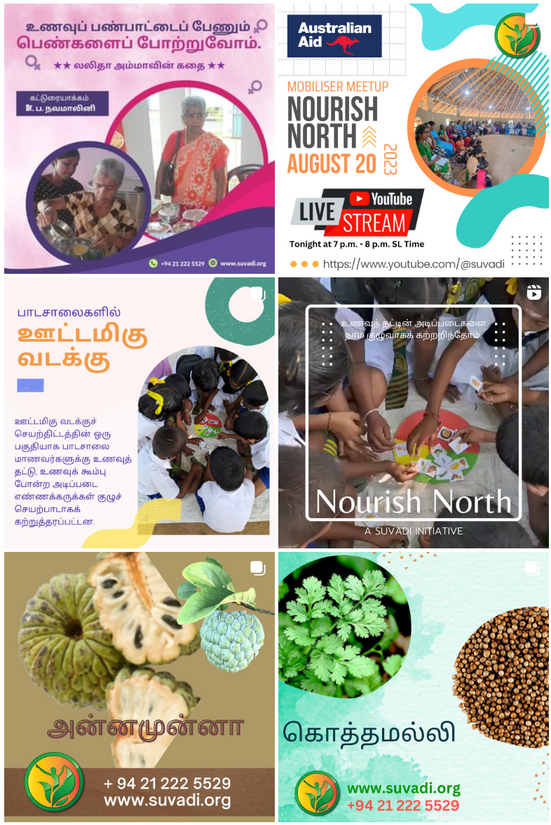 Suvadi has also campaigned for the Nourish North Initiative project through mass media. The progress of the project and specific actions carried out under the initiative have been covered by popular online magazines, news media, radio, and local TV channels. For example, following our Women's Day celebrations and mini expo, Jegan Arulaiya wrote an article titled "Women's Day, strength & Knowledge through togetherness" on Lanka Business Online.
