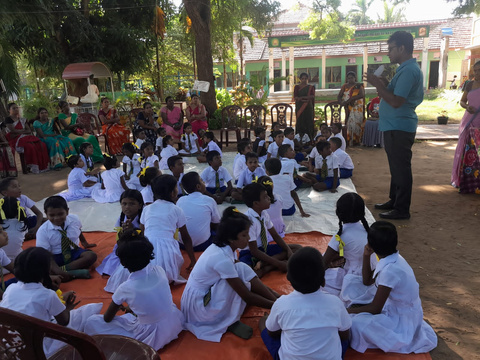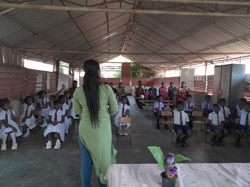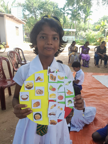 The first workshop was held on August 4 at the J/ Sivapirakasa Hindu Primary School in Chankanai. It was attended by 49 students from grades 4 and 5, 18 parents, school teachers, and the principal. The students were divided into six groups and tasked with creating a food plate based on the food they had eaten for lunch the day before. They were able to do this actively and correctly.