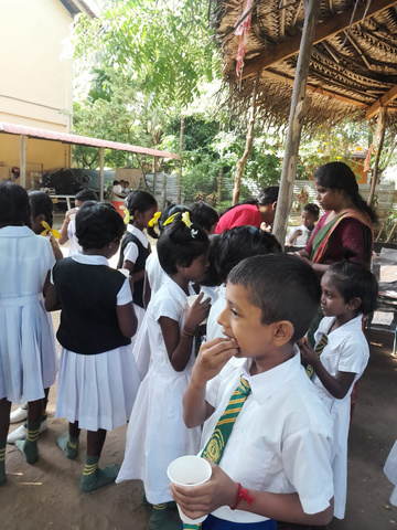 The second workshop was held on August 14 at the Anantha Kumarasamy Primary School in Puthiya Velar Sinakulam, Omanthai, and Vavuniya. It was attended by 18 students from grades 3, 4, and 5, 20 parents, and the principal. Peanut biscuits and lime juice were served during the break. The students enthusiastically participated in the food plate activity. Parents also learned more about food and nutrition. The principal and teachers are eager to practice this idea in their school meal program.
