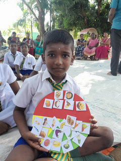 To bolster this initiative, a dedicated group of school teachers underwent comprehensive training on promoting diet diversity and attaining nutritional sufficiency. These educators, in turn, convey knowledge about diet variety, micronutrition, and combating hidden hunger to their students. Our virtual classroom is accessible to the public via www.suvadi.net. In tandem with this effort, we have established partnerships with local nonprofit organizations like ARV Trust (located in Thellaipalai) and civil society groups, collaboratively expanding the utilization of the virtual classroom. For areas lacking internet connectivity, we have thoughtfully distributed printed versions of our posters to community centers and schools.