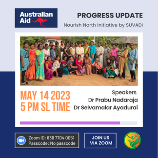 Nourish North is a flagship initiative of SUVADI supported by the Australian High Commission to Sri Lanka through a Direct Aid Program Grant.It is a solid step towards breaking the intergenerational cycle of malnutrition in Northern Sri Lanka.