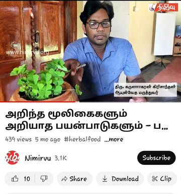 Dr Krish’s talk on Nimirvu Media about known herbs & unknown uses